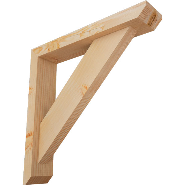Rustic Wood Bracket w/ Offset Brace, Traditional Style, Slat Ends, 3 1/2"W x 18"D x 18"H, Smooth Douglas Fir